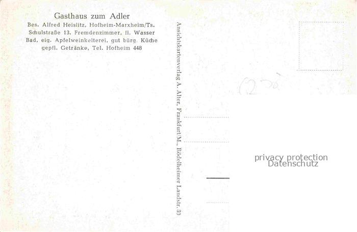 74064853 Marxheim Hofheim Taunus Hessen Ansicht mit Kirche Gasthaus zum Adler postalisch nicht gelaufen Erhaltung siehe scans [FriedD77] KatCode: 11110006436007