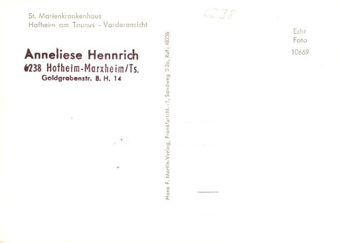 73889054 Marxheim Taunus St Marienkrankenhaus postalisch nicht gelaufen Erhaltung siehe scans [WerneD78] KatCode: 11110006436007