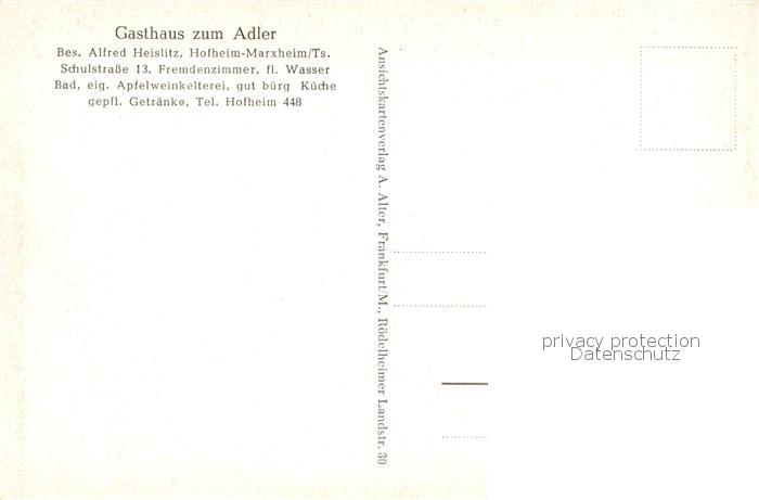 73777983 Marxheim Taunus Stadtpanorama Gasthaus zum Adler postalisch nicht gelaufen Erhaltung siehe scans [FriedD77] KatCode: 11110006436007