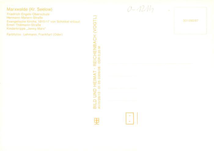 73946797 Marxwalde Neuhardenberg Brandenburg Friedrich Engels Obeerschule Hermann Matern Str Ev Kirche Ernst Thaelmann Str Kinderkrippe Jenny Marx postalisch nicht gelaufen Erhaltung siehe scans [WerneD78] KatCode: 11110012064340