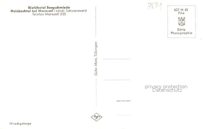43348004 Marxzell Karsruhe BW Waldhotel Bergschmiede Dammwild Holzbachtal postalisch nicht gelaufen Erhaltung siehe scans [KathaD81] KatCode: 11110008215047