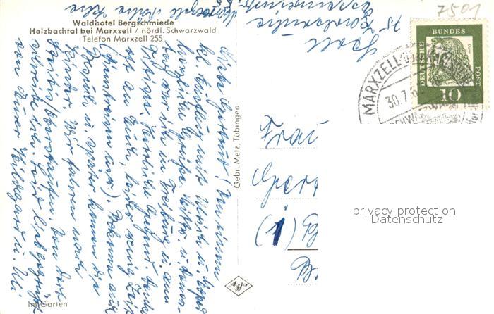 43348005 alte Postkarte Marxzell Karsruhe BW Waldhotel Bergschmiede Holzbachtal Brunnen postalisch gelaufen Erhaltung siehe scans [KathaD81] KatCode: 11110008215047