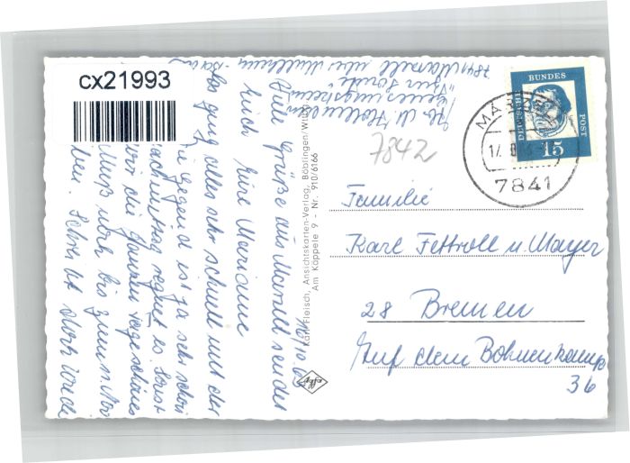 30739601 alte Postkarte Marzell postalisch gelaufen KatCode: 11110008336104