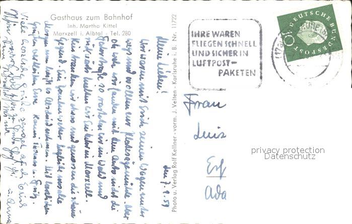 72185376 alte Postkarte Marzell Bahnhof Kirche Frauenalb Gasthaus zum Bahnhof postalisch gelaufen Erhaltung siehe scans KatCode: 11110008336104