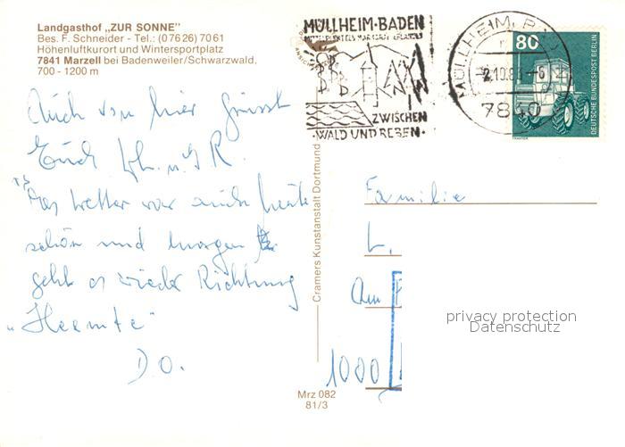 73716487 alte Postkarte Marzell Landgasthof Zur Sonne Sonnenkeller Bar Gastraeume postalisch gelaufen Erhaltung siehe scans [WerneD78] KatCode: 11110008336104