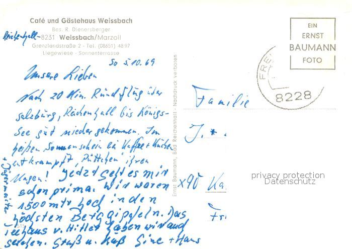 73662523 alte Postkarte Marzoll Cafe und Gaestehaus Weissbach postalisch gelaufen Erhaltung siehe scans [FriedD77] KatCode: 11110009172114