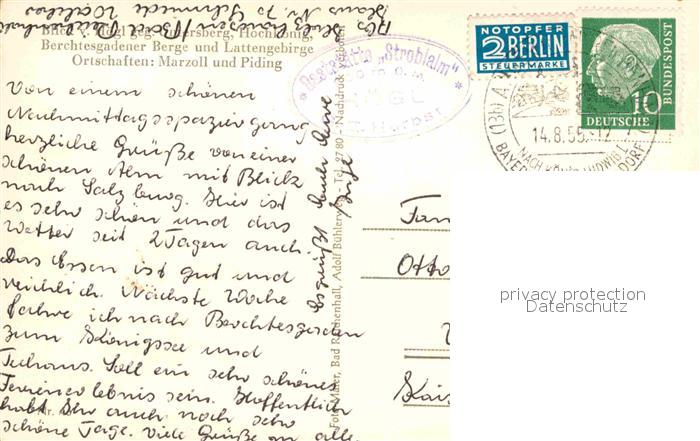 72786761 alte Postkarte Marzoll Piding Blick vom Hoegl gegen Untersberg Hochkoenig Berchtesgadener Berge Lattengebirge postalisch gelaufen Erhaltung siehe scans [FriedD77] KatCode: 11110009172114