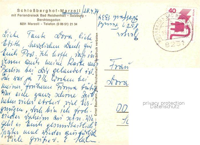 72896986 alte Postkarte Marzoll Schlossberghof postalisch gelaufen Erhaltung siehe scans [KathaD81] KatCode: 11110009172114