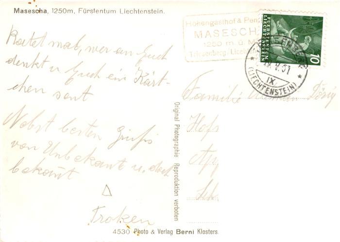 73873216 alte Postkarte Masescha Liechtenstein Teilansicht postalisch gelaufen Erhaltung siehe scans [FriedD77] KatCode: 11280080000000