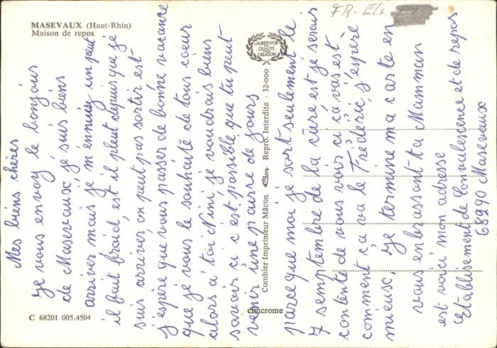 11360126 Masevaux Haut Rhin Alsace Maison de repos Erholungsheim Wappen KatCode 11170068668201