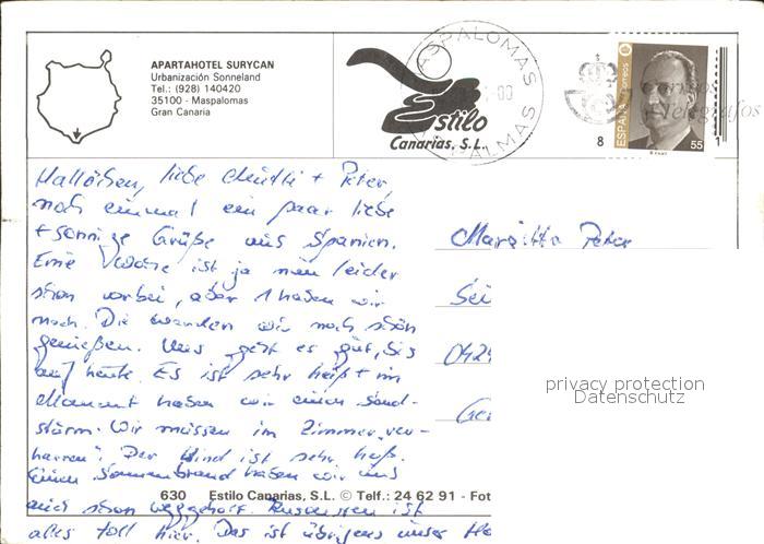 old postcard Maspalomas Aparthotel Surycan postalisch gelaufen Erhaltung siehe scans