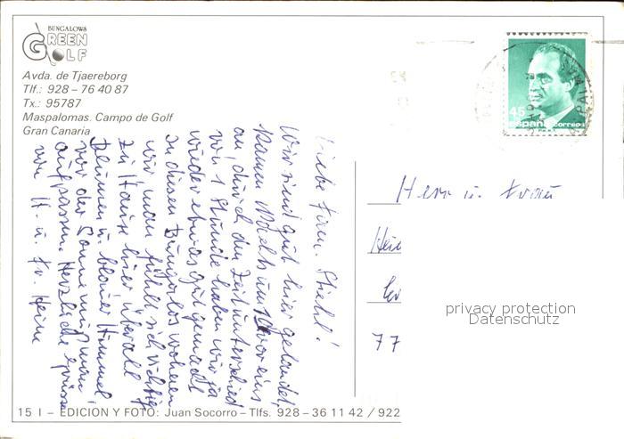 old postcard Maspalomas Bungalows Green Golf postalisch gelaufen Erhaltung siehe scans