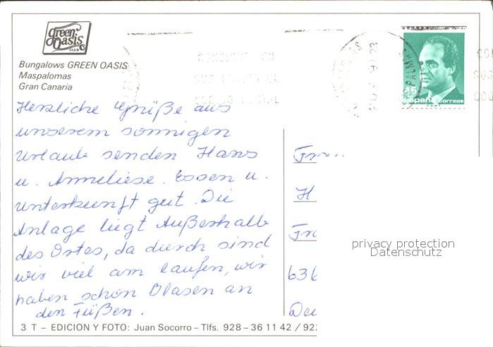 old postcard Maspalomas Bungalows Green Oasis postalisch gelaufen