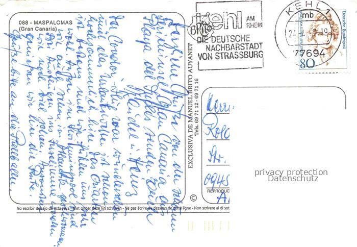 74043693 old postcard Maspalomas Gran Canaria ES Kuestenpanorama postalisch gelaufen Fliegeraufnahme Erhaltung siehe scans [FriedD77] KatCode: 11510