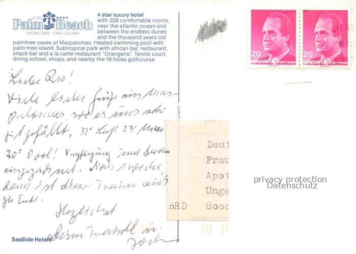 74085057 old postcard Maspalomas Gran Canaria ES Palm Beach Hotel Fliegeraufnahme postalisch gelaufen Erhaltung siehe scans [WerneD78] KatCode: 11510