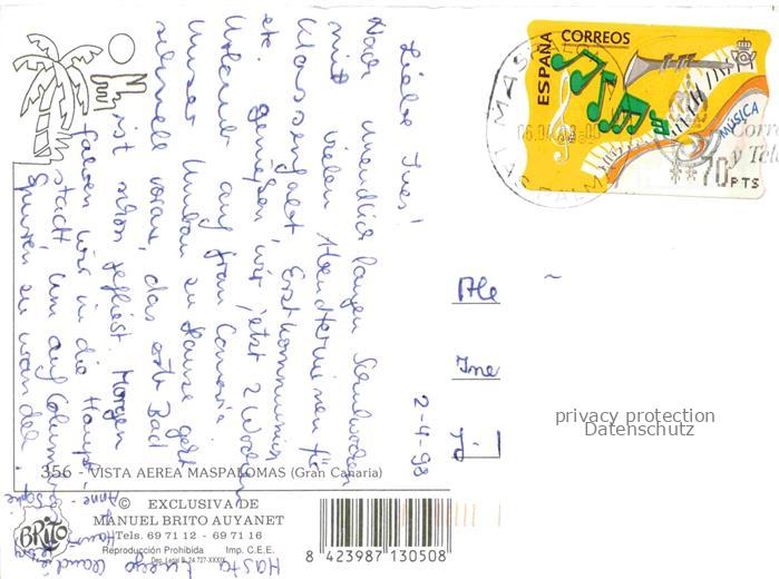 74040580 old postcard Maspalomas Gran Canaria ES Vista aerea postalisch gelaufen Fliegeraufnahme Erhaltung siehe scans [FriedD77] KatCode: 11510