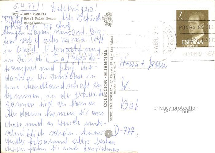 old postcard Maspalomas Hotel Palm Beach postalisch gelaufen Erhaltung siehe scans