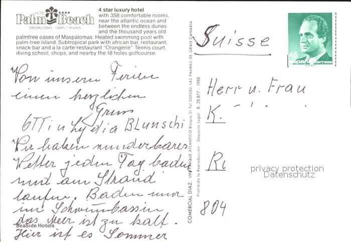 old postcard Maspalomas Palm Beach Hotel Strand postalisch gelaufen Erhaltung siehe scans [FriedD77]