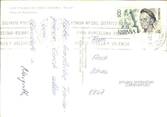 old postcard Maspalomas Playa Strand Hotel postalisch gelaufen Erhaltung siehe scans [FriedD77]