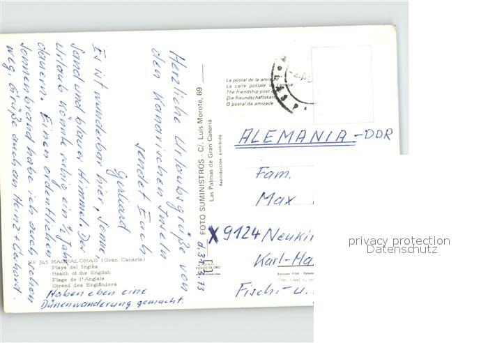 old postcard Maspalomas Strand postalisch gelaufen Erhaltung siehe scans