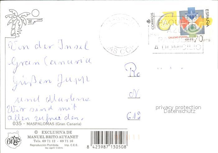 old postcard Maspalomas Strand Hotels Leuchtturm postalisch gelaufen Erhaltung siehe scans