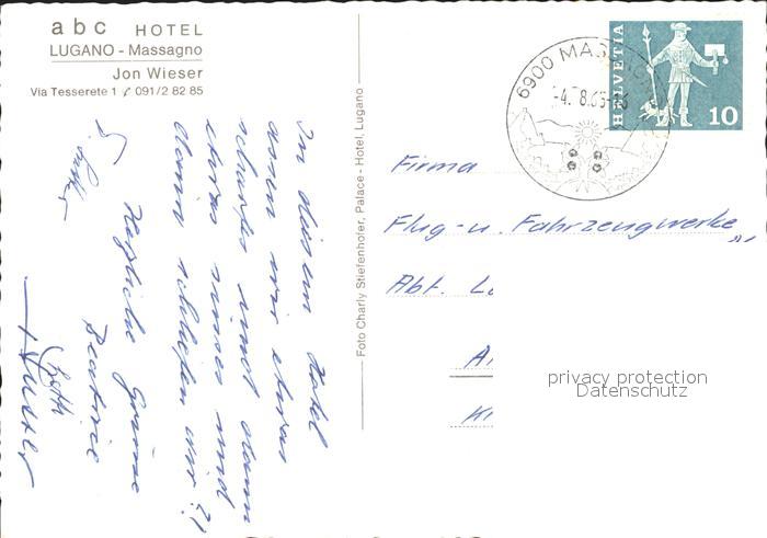 11652865 alte Postkarte Massagno abc Hotel postalisch gelaufen Erhaltung siehe scans KatCode: 11470210660164