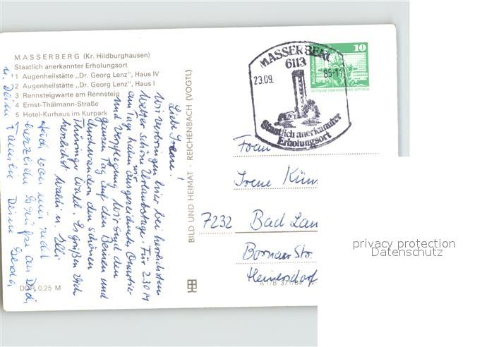 71949613 alte Postkarte Masserberg Augenheilstaette Rennsteigwarte Ernst Thaelmann Strasse Hotel Kurhaus postalisch gelaufen Erhaltung siehe scans KatCode: 11110016069061