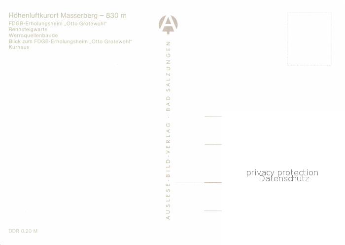 72646138 Masserberg FDGB Erholungsheim Otto Grotewohl Rennsteigwarte Werraquellenbaude Kurhaus postalisch nicht gelaufen Erhaltung siehe scans [FriedD77] KatCode: 11110016069061
