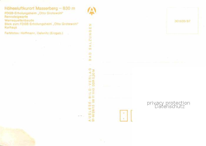 72654621 Masserberg FDGB Erholungsheim Otto Grotewohl Rennsteigwarte Werraquellenbaude Kurhaus Hoehenluftkurort postalisch nicht gelaufen Erhaltung siehe scans [FriedD77] KatCode: 11110016069061