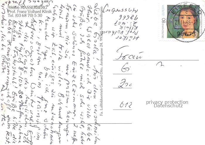 74044205 Masserberg Hildburghausen Thueringen Franz Vollhard Klinik Fliegeraufnahme postalisch gelaufen Erhaltung siehe scans [WerneD78] alte Postkarte Wern Katcode 11110016069061
