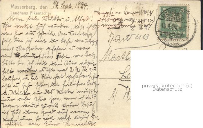 41447750 Masserberg Hildburghausen Thueringen Landhaus Fikentscher postalisch gelaufen Erhaltung siehe scans Alte Ansichtskarte Postkarte alte Postkarte hz_F Katcode 11110016069061