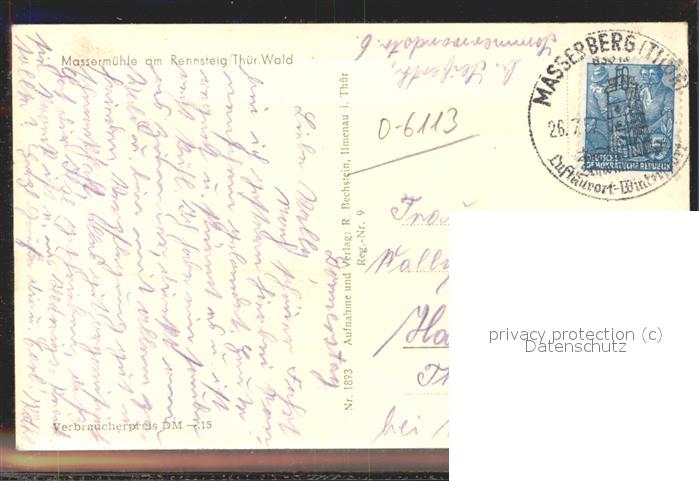 41447691 Masserberg Hildburghausen Thueringen Massermuehle am Rennsteig postalisch gelaufen Erhaltung siehe scans Alte Ansichtskarte Postkarte alte Postkarte hz_F Katcode 11110016069061