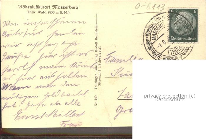 41447686 Masserberg Hildburghausen Thueringen Panorama Hoehenluftkurort mit Meuselbacher Kuppe postalisch gelaufen Erhaltung siehe scans Alte Ansichtskarte Postkarte alte Postkarte hz_F Katcode 11110016069061