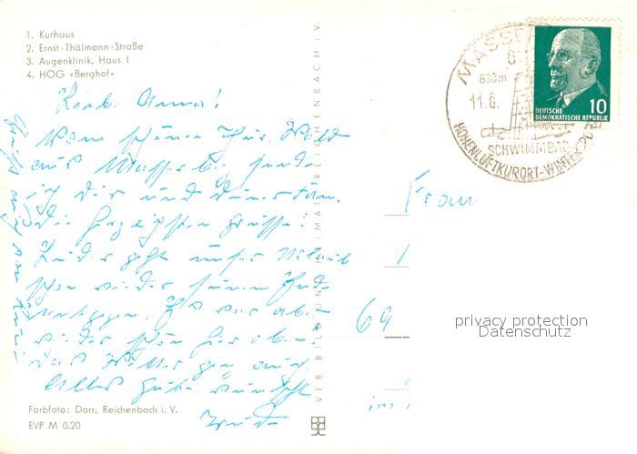 73649763 alte Postkarte Masserberg Kurhaus Ernst Thaelmann Strasse Augenklinik HOG Berghof Gaststaette postalisch gelaufen Erhaltung siehe scans [FriedD77] KatCode: 11110016069061