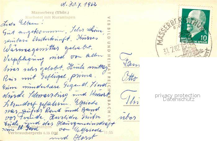 72698667 alte Postkarte Masserberg Kurhotel mit Kuranlagen postalisch gelaufen Erhaltung siehe scans [LiesaD40] KatCode: 11110016069061