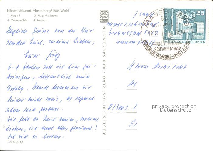 72373132 alte Postkarte Masserberg Kurpark Augenheilstaette Massermuehle Kurhaus Hoehenluftkurort Thueringer Wald postalisch gelaufen Erhaltung siehe scans KatCode: 11110016069061