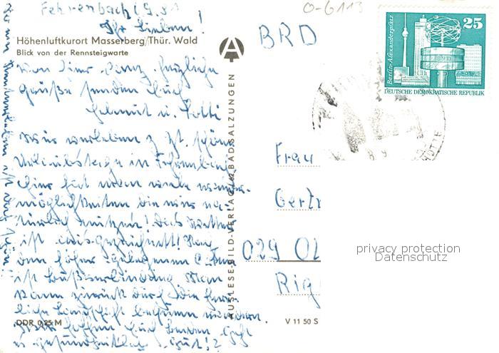 73032740 alte Postkarte Masserberg Panorama postalisch gelaufen Erhaltung siehe scans [KathaD81] KatCode: 11110016069061