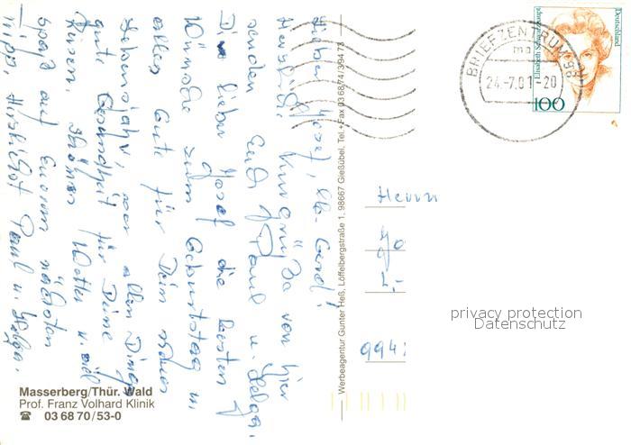 73108058 alte Postkarte Masserberg Professor Franz Volhard Klinik postalisch gelaufen Erhaltung siehe scans [KathaD81] KatCode: 11110016069061