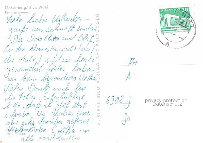 72686349 alte Postkarte Masserberg Rennsteigwarte postalisch gelaufen Erhaltung siehe scans [LiesaD40] KatCode: 11110016069061