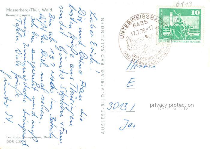 73075999 alte Postkarte Masserberg Rennsteigwarte postalisch gelaufen Erhaltung siehe scans [KathaD81] KatCode: 11110016069061