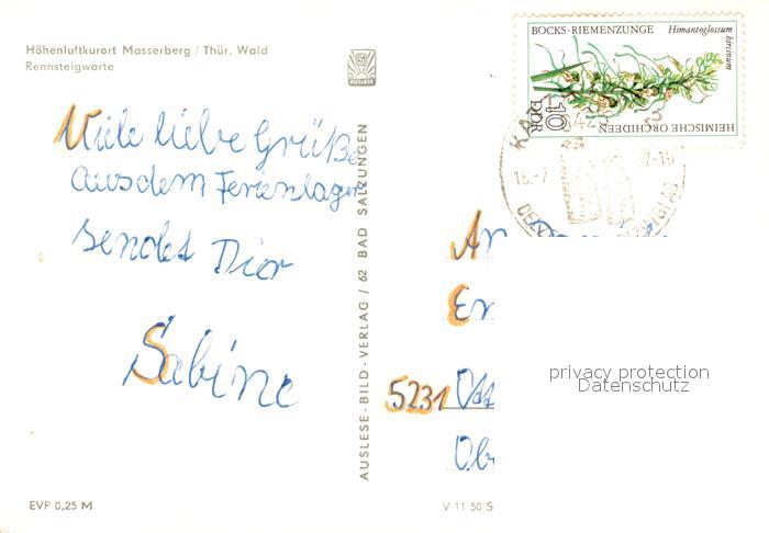 73038356 alte Postkarte Masserberg Rennsteigwarte postalisch gelaufen Erhaltung siehe scans [KathaD81] KatCode: 11110016069061