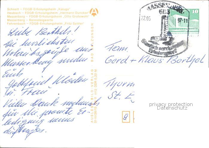 72324555 alte Postkarte Masserberg Schnett Heubach Fehrenbach postalisch gelaufen Erhaltung siehe scans KatCode: 11110016069061