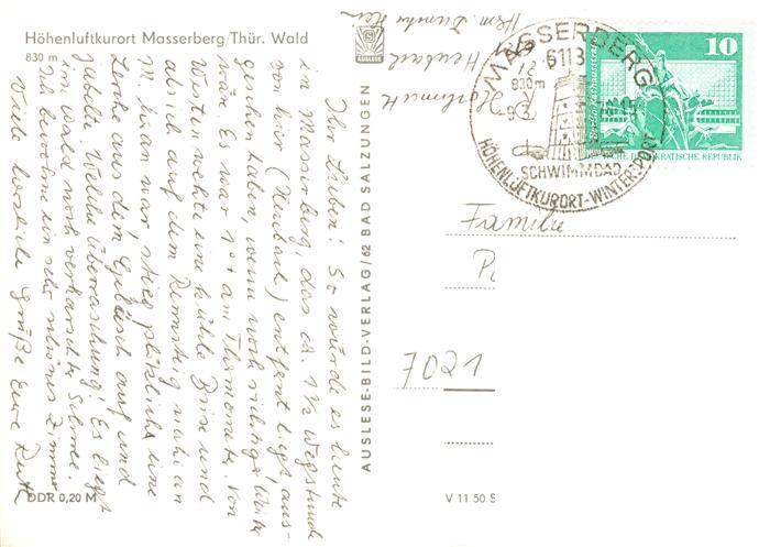 73924667 alte Postkarte Masserberg Winterpanorama postalisch gelaufen Erhaltung siehe scans [FriedD77] KatCode: 11110016069061