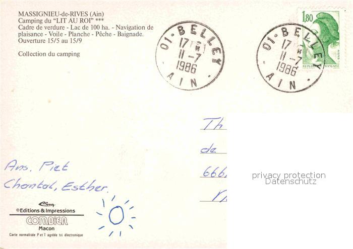 12637845 carte postale Massignieu-de-Rives Camping du Lit Au Roi postalisch gelaufen Erhaltung siehe scans [AndreD76] KatCode: 11170001101239
