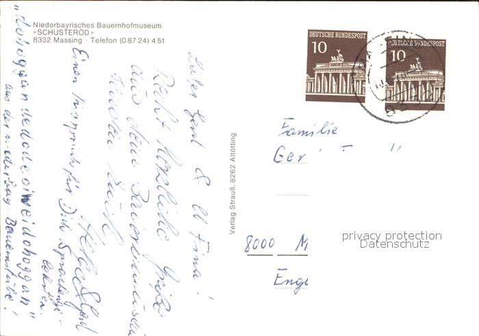 72599706 alte Postkarte Massing Rottal Niederbayrisches Bauernhofmuseum Schusteroed postalisch gelaufen Erhaltung siehe scans [FriedD77] KatCode: 11110009277133