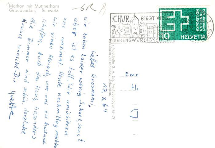 13871449 alte Postkarte Mathon GR mit Muttnerhorn postalisch gelaufen Erhaltung siehe scans [WerneD78] KatCode: 11470100315060
