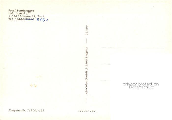 13588519 Mathon Tirol Fliegeraufnahme Josef Sonderegger Mathonerhof postalisch nicht gelaufen Erhaltung siehe scans [LiesaD40] KatCode: 11390