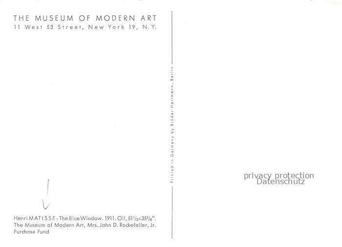 74091781 MATIssE Henri (1869-1954) Kuenstlerkarte The Blue Window New York Museum Modern Art postalisch nicht gelaufen Erhaltung siehe scans [SanaeD93] KatCode: 22240000003210