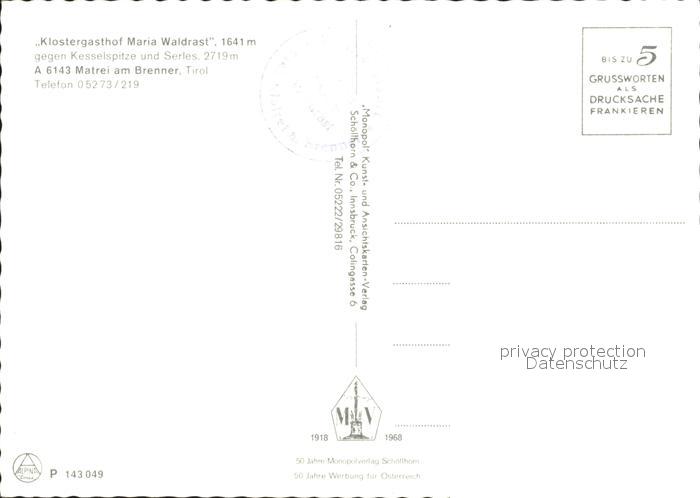 72233347 Matrei Brenner Klostergasthof Maria Waldrast postalisch nicht gelaufen Erhaltung siehe scans KatCode: 11390332070327