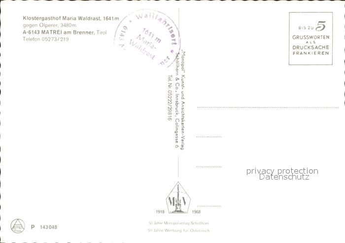 72235079 Matrei Brenner Klostergasthof Maria Waldrast postalisch nicht gelaufen Erhaltung siehe scans KatCode: 11390332070327